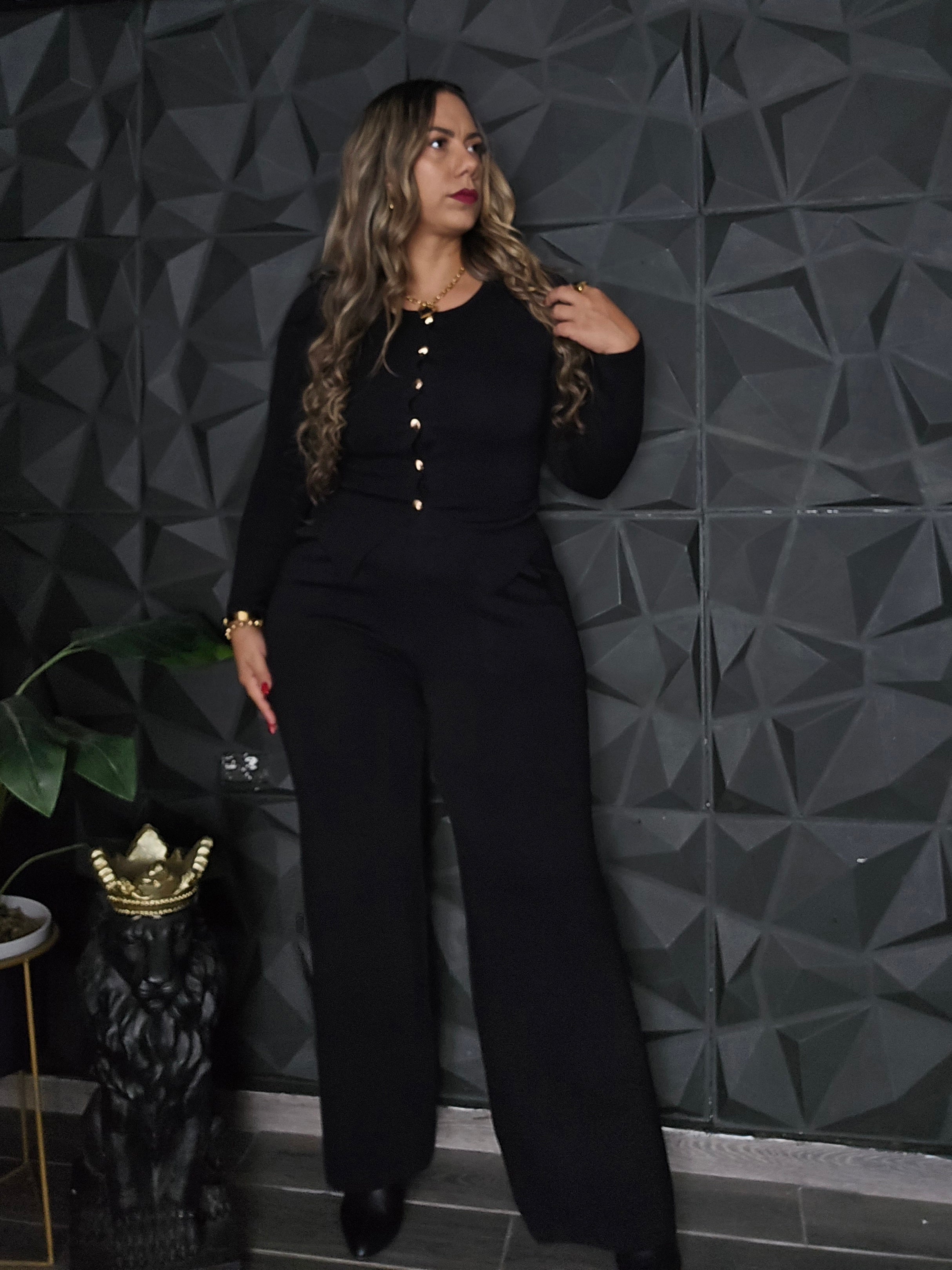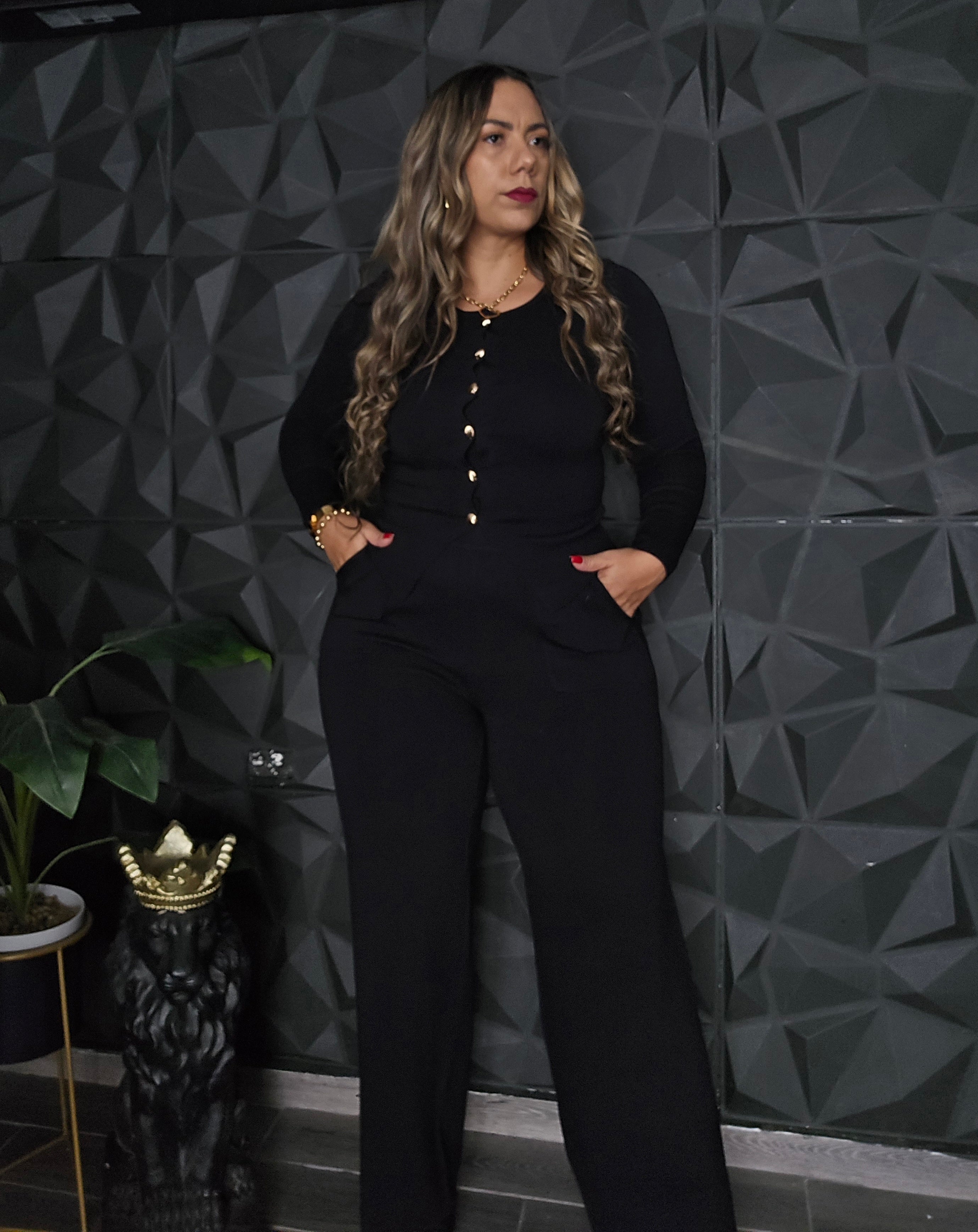 Set de top manga larga, botones funcionales y pantalón Top puedes usarlo cerrado o con top básico...